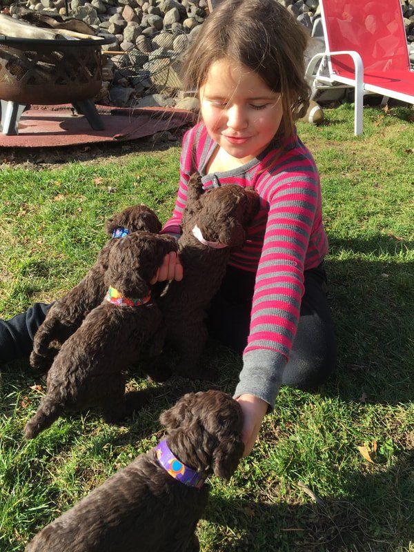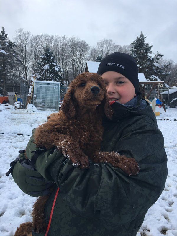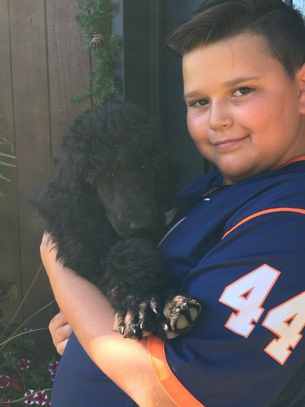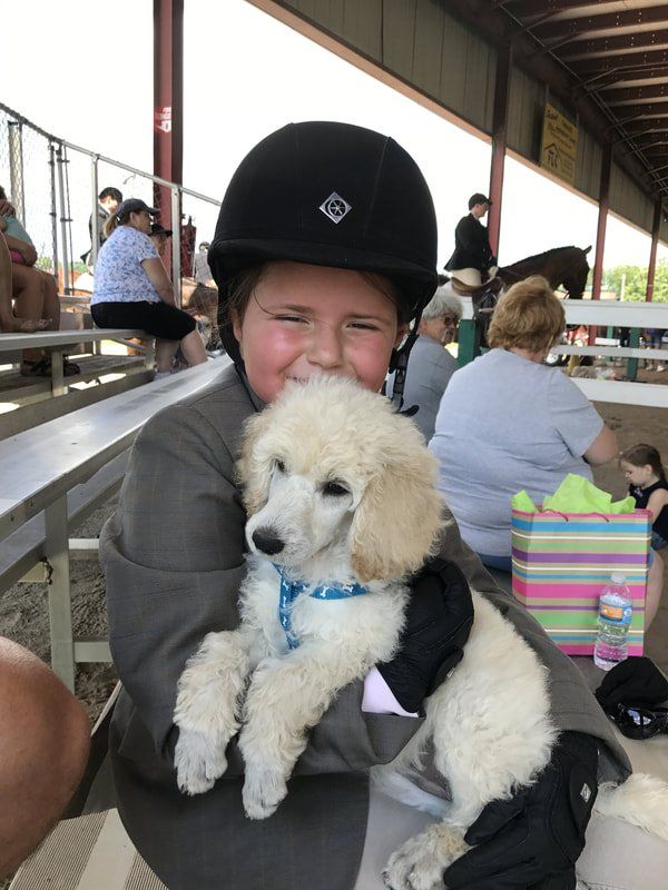 London is now 12 and continues her passion for our puppies, she has trained for families and continues to work with her own poodle Wyatt & Winston. London has an act for animals and a passion to excel with them. She shows horses as well, plays soccer, and the rest of her time is spent doing what ever she can with the dogs. She will be doing agility training this winter. She loves puppies and is my biggest helper.